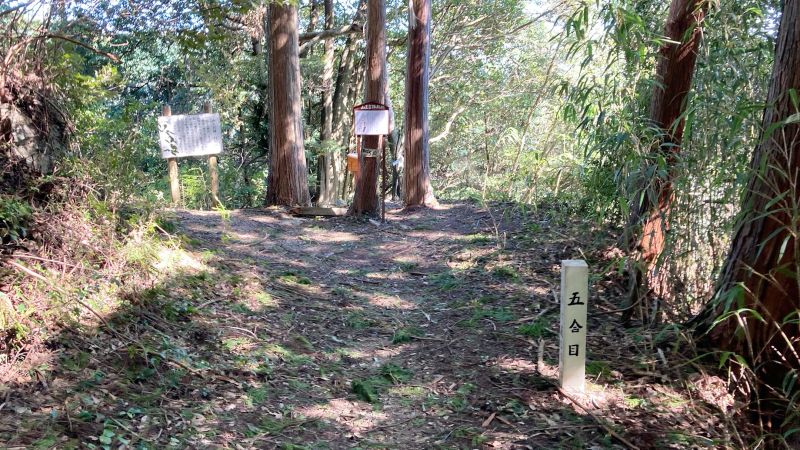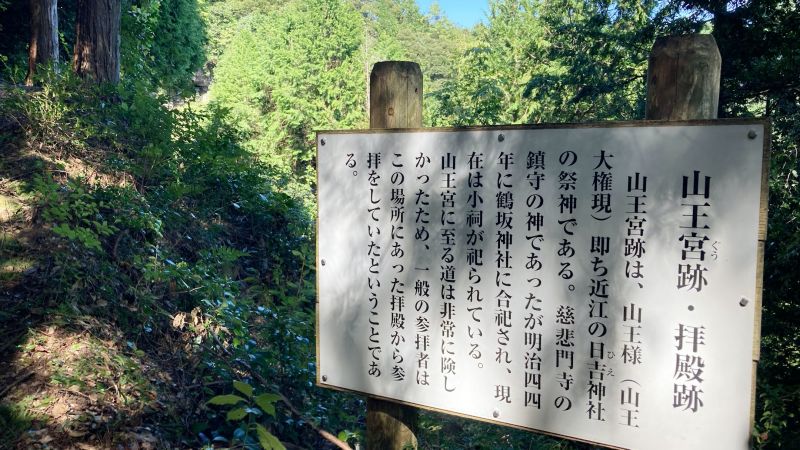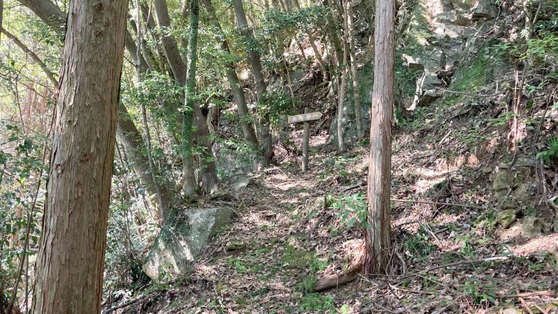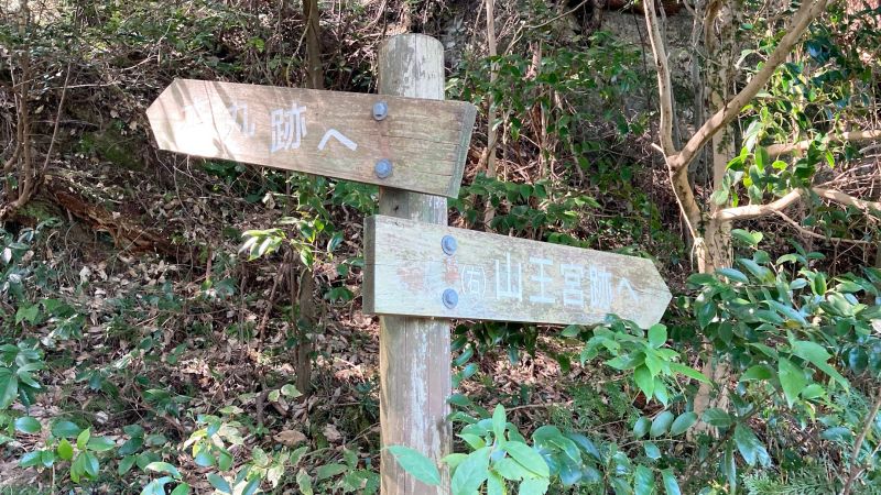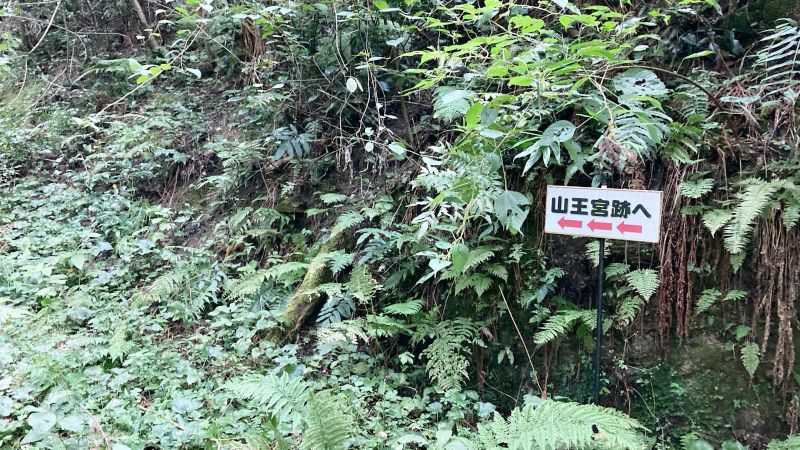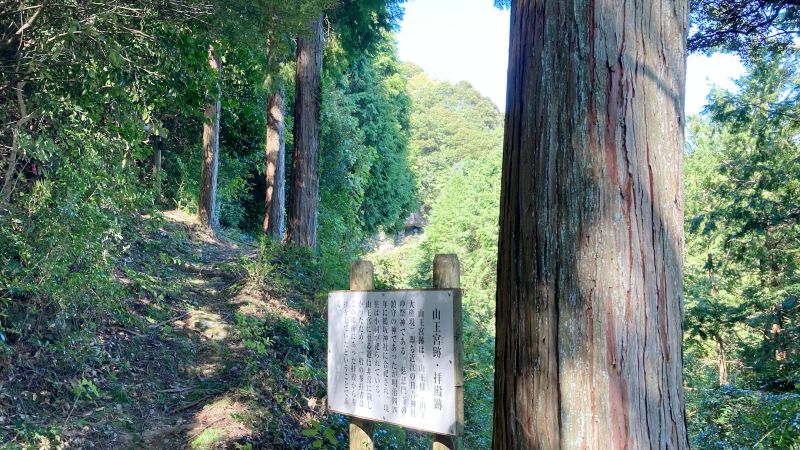 ここから分岐して山王宮拝殿跡まで行くこともできるみたいで少しだけ進んでみましたが、行ってまた戻ってくるには結構大変な感じがして断念してしまいました。他の登山者の記録を見るとそこまで大変そうでもないので、もしまたいつかここに来るときには行ってみようかと思います。