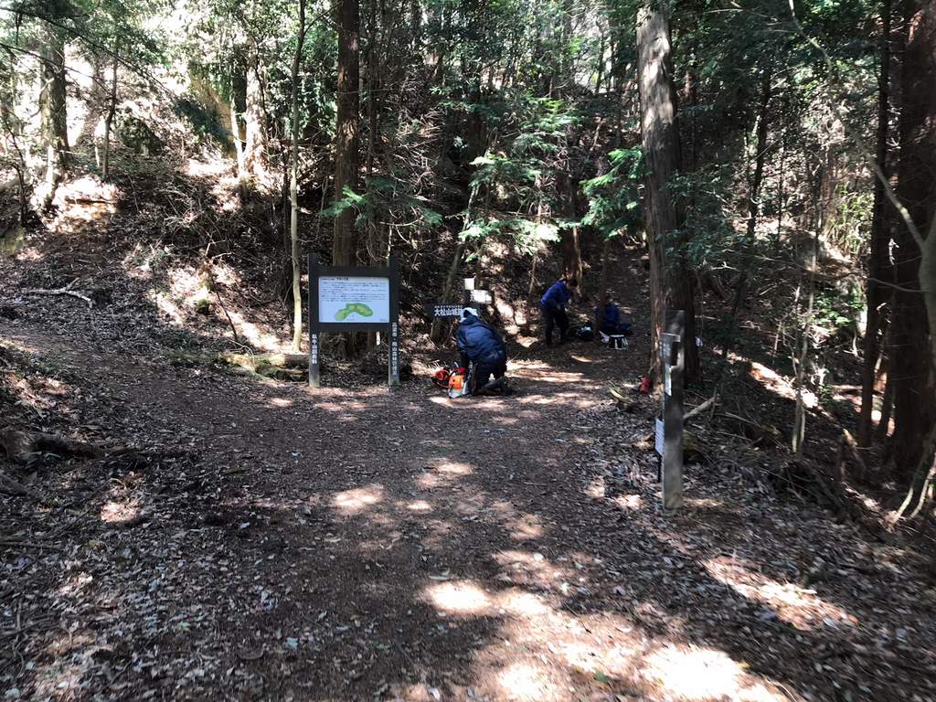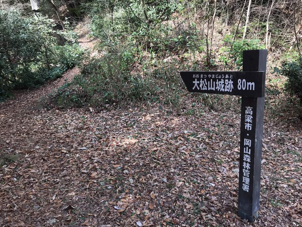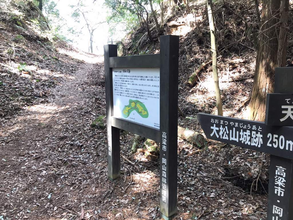 天神の丸跡を見てから看板のところまで戻り、更に先にある大松山城跡に向けて進みます。
