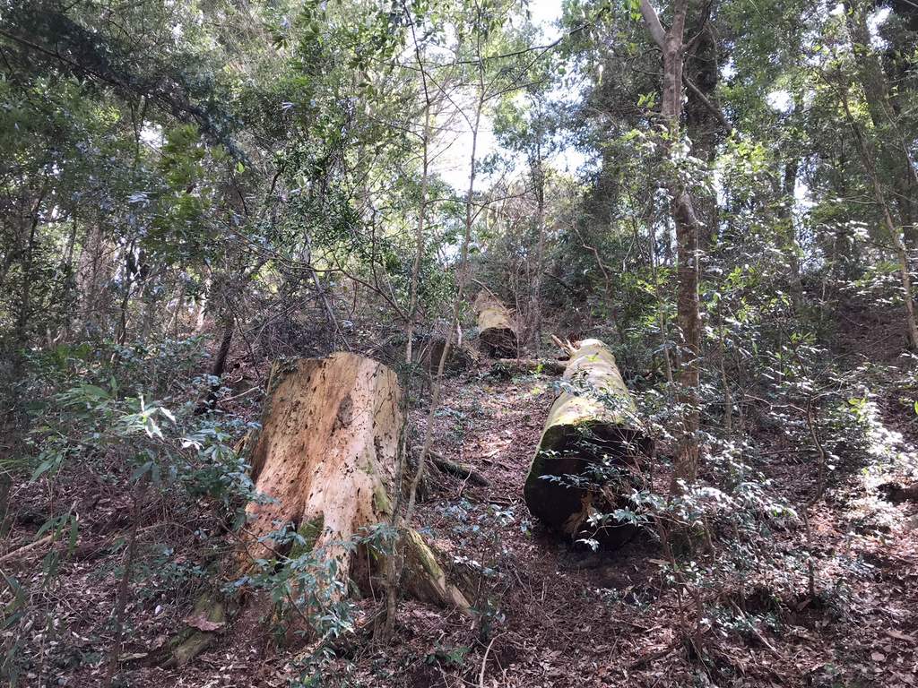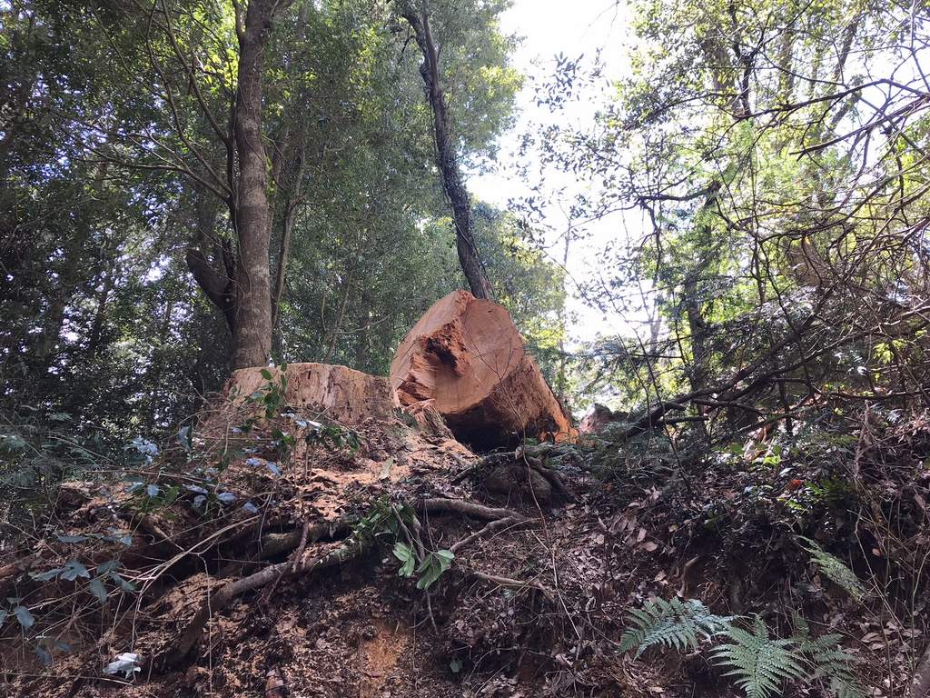 更に危なっかしい道が続きますが、ところどころ木が伐採されているのを見ることができて飽きることなく歩くことができます。